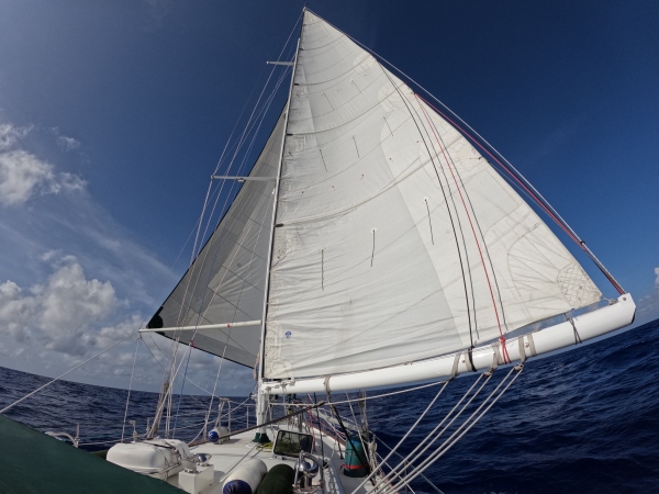 sv Bad Bunny Wing and Wing Sailing from Rongerik Atoll to Rongelap Atoll, Marshall Islands