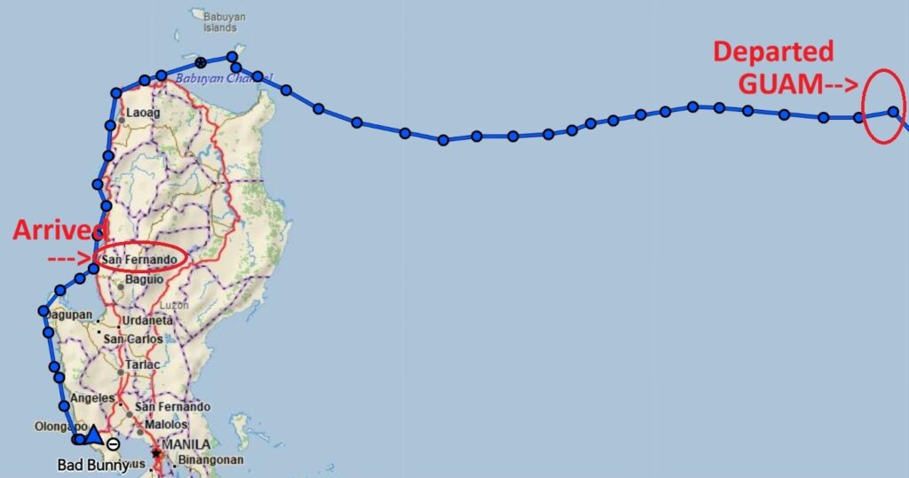 (March 29 – April 13, 2026) Before leaving Guam, a fellow sailor told me about the Kuroshio Current (also known as the “Black” or “Japan” Current). Much like the Gulf Stream in the Atlantic, this current can add or subtract over 3 knots to your speed. By riding it, we maintained a fast moving average of 7.2 knots as we approached the northern Philippines.
